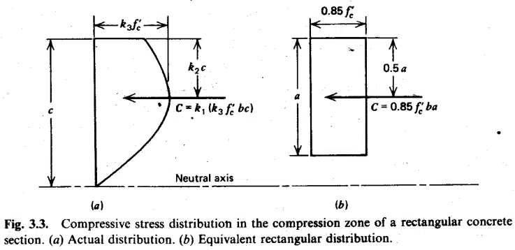 The following figure indicates the idealized compress stress block in compression[obtained from the same book].