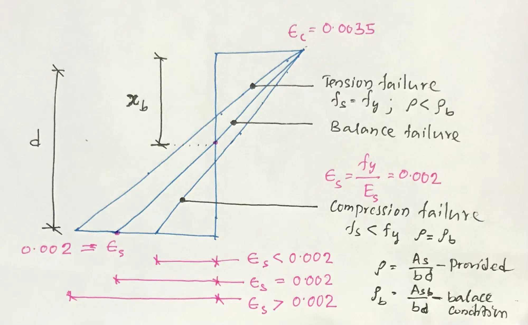 Let’s see the other two types of possibility under reinforced section and over reinforced section. Different modes of failure can be illustrated as follows.