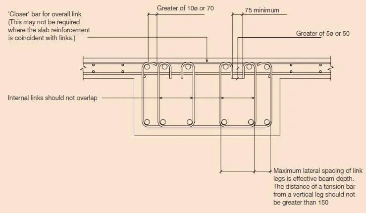 - Mostly the links spacing are maintained as 150mm for seismic requirements near in beam-column joints. The article on Seismic Detailing could read for better understanding.