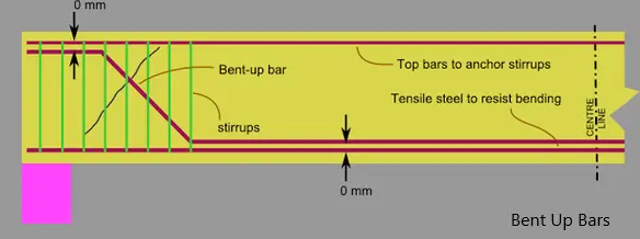 As we can see in the above figure, bent up bars can be placed in the beams, the main reinforcement bar can continue as bent up bar in the beam.