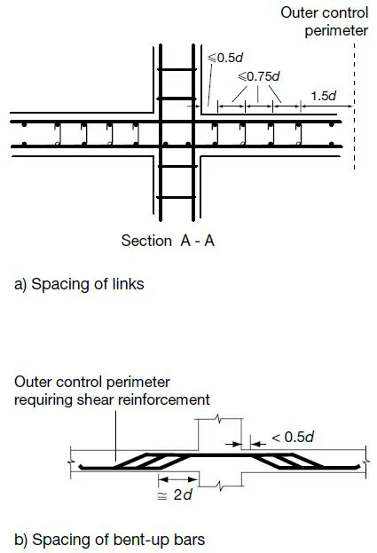 - When the spacing of a bar exceeds 150mm from the restraining bar (the bar having a shear link), a shear link shall be provided to restrain that bar.