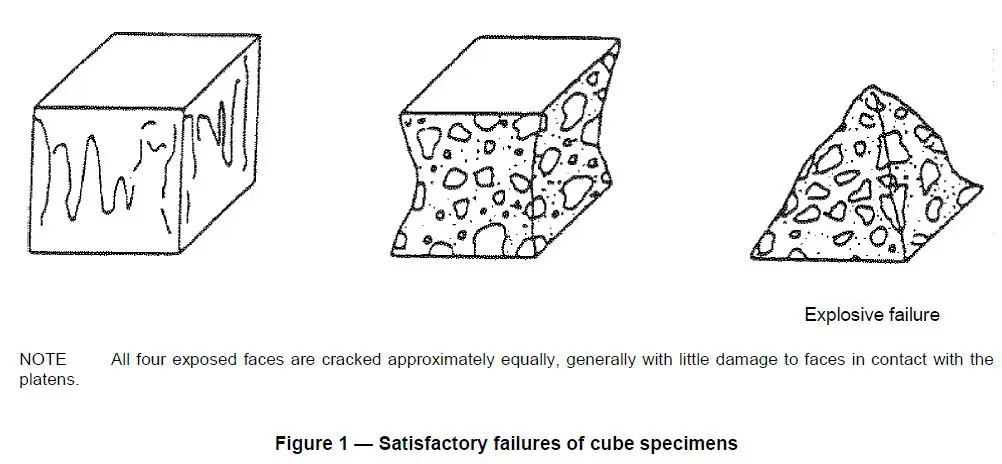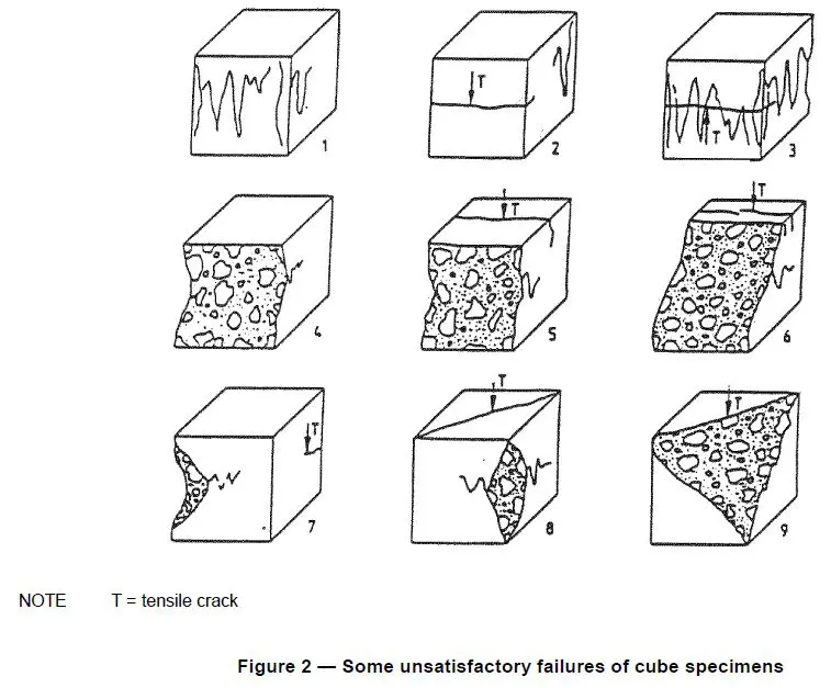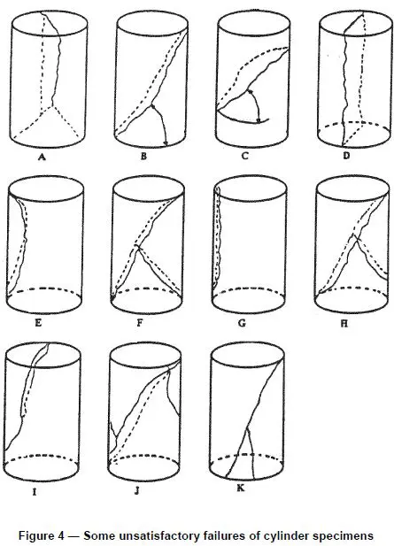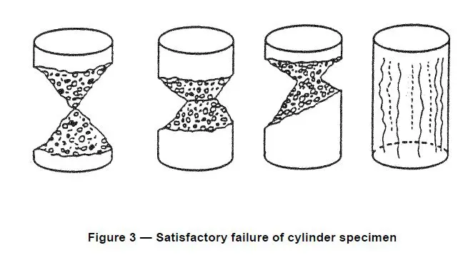 The failure method of the cub or cylinder is taken into account when the results are given. If the cube or the cylinder is failed unsatisfactory, the test specimen is disregarded.