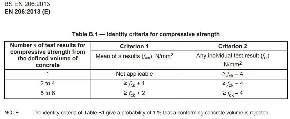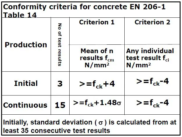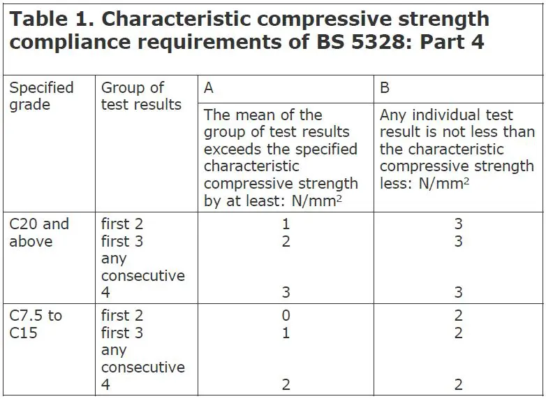 Conformity Criteria as per BS 5328 Part 4 for Compressive Strength