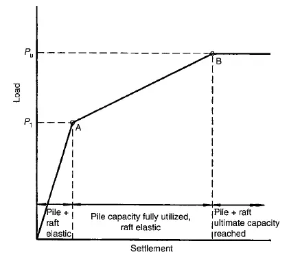 - Further settlement/loads, lead piles to reach its full capacity. However, the raft is not at its full capacity which we say the raft is elastic.