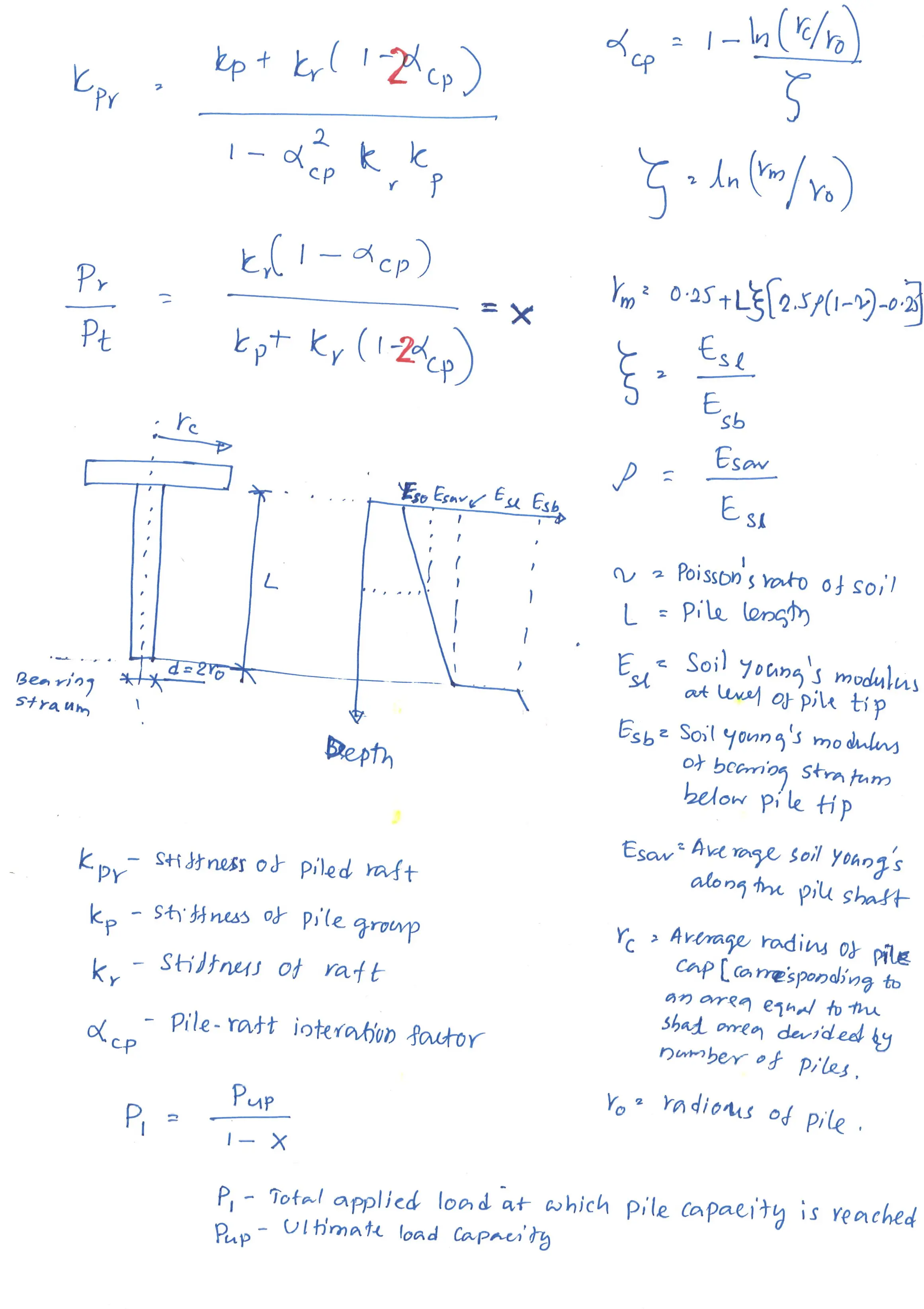 There is a slight deviation in the equations used by Randolph and the Poulos as indicated in the following design procedure. The text indicated in red color is as per the Randolph method.