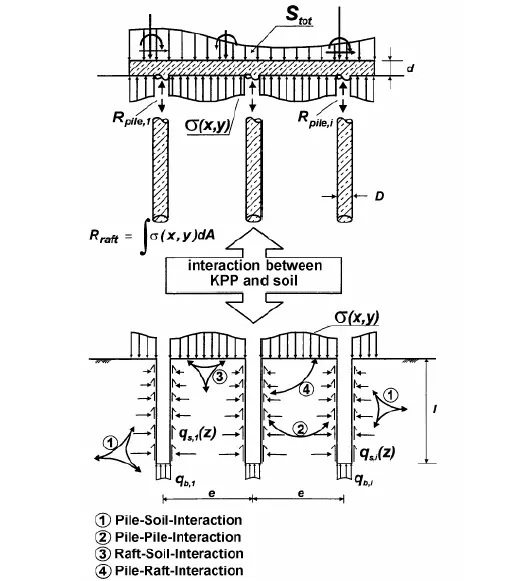 Further clarification on the method of calculating the load sharing could be made on publication Piled Raft Foundations: Design and Applications by Harry G. Poulos.