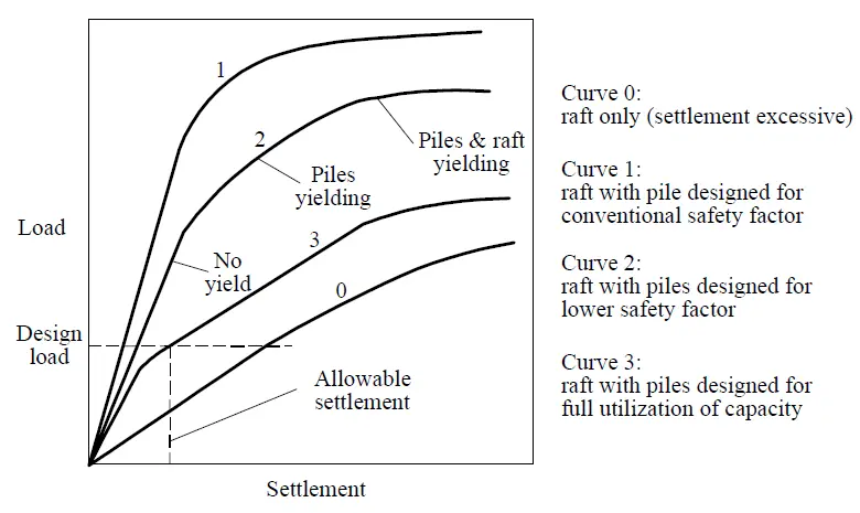 Thus, the behavior of the piled raft represented by Curve 3 is more suitable and also it is more economical when compared with other behaviors.