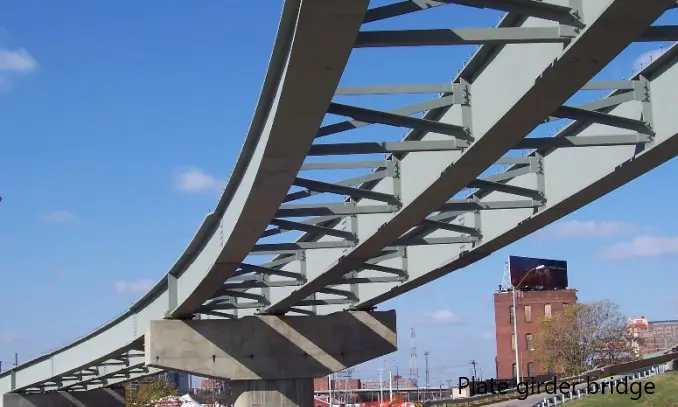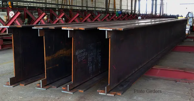A plate girder is a steel beam that is widely used in bridge construction. Depending on the design requirements and as per the nature of the structure; metal thicknesses for web, flanges, stiffness, etc are determined.