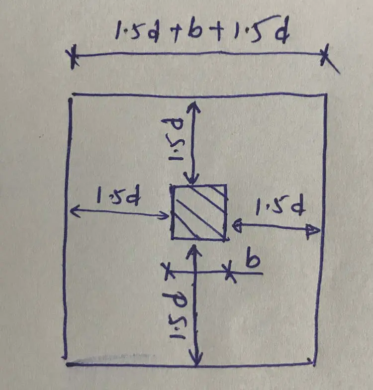Length of share perimeter = 4x(1.5d+300+1.5d) = 4x(1.5×350 + 300 + 1.5×350) = 5400mm