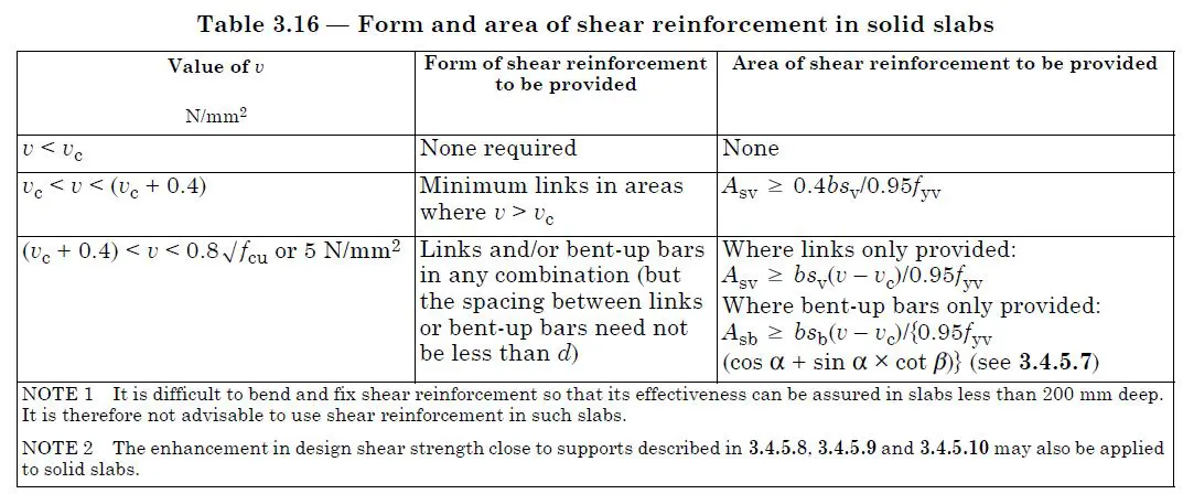Note: depending on the applied shear force, relevant formula shall be selected from Table 3.16.