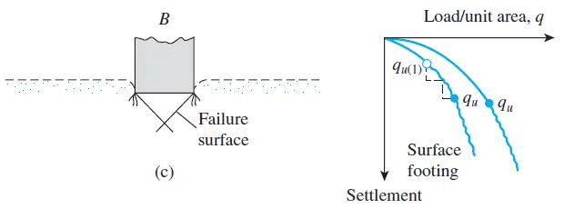 The ultimate pressure that soil can bear is the ultimate bearing capacity of the foundation. As indicated in the above, when the load reaches the ultimate bearing capacity qu, it fails.