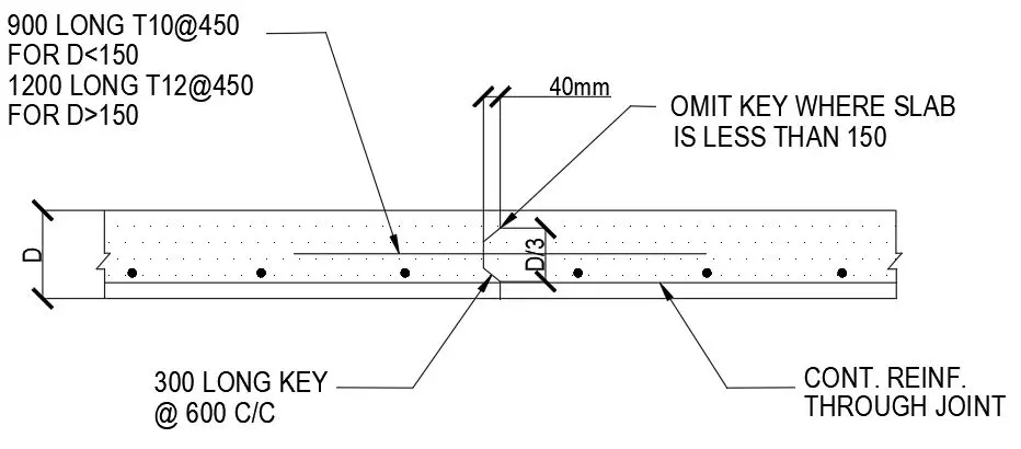 Further thinner slabs, it is very difficult to form a shear key. Therefore, most of the time, a key is not provided for slabs thickness around 150mm or less.