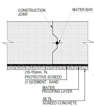 The above figure indicates the type of shear key that could be placed in the raft foundations. Depending on the nature of the construction, waterstops are provided.