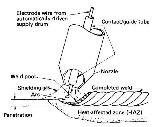 - The welding pool, arc and electrode are protected by the gas shield. This may be the reason that these types of welding are named Gas shielded welding.